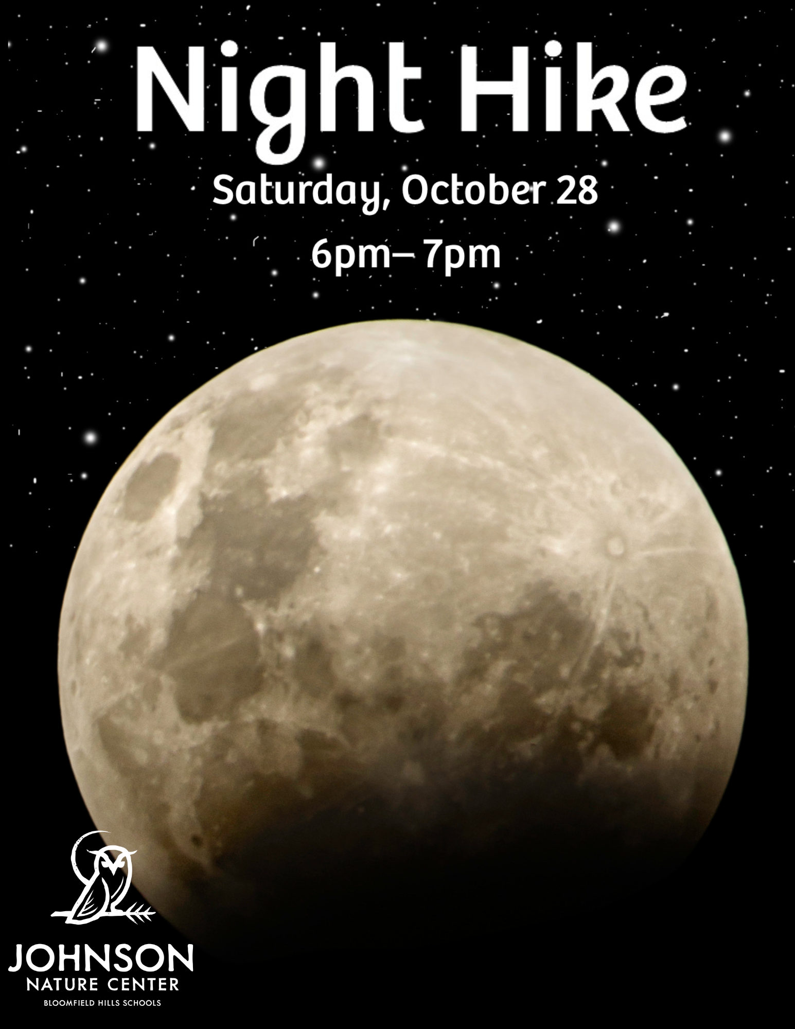 Come check out the partial lunar eclipse while we hike some trails exploring the night sky and nocturnal animals.